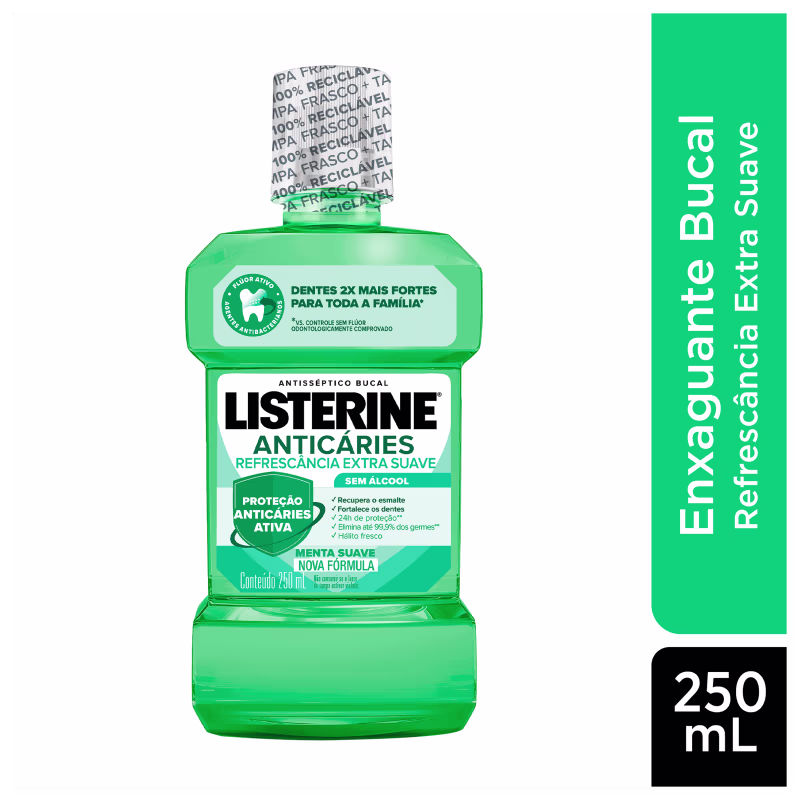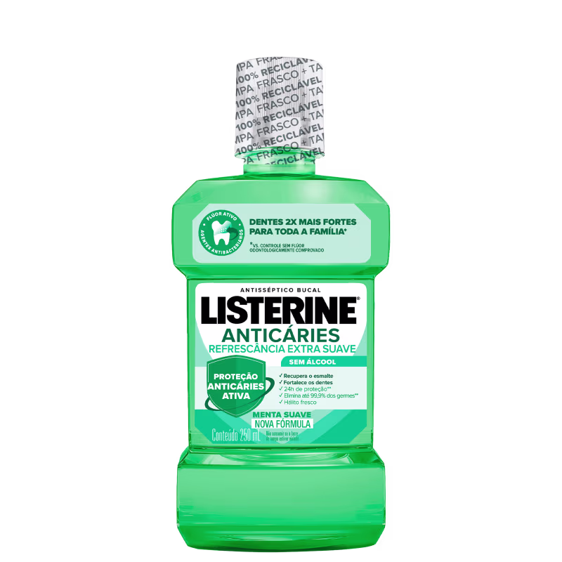 Enxaguante bucal fortalecedor. Listerine Anticáries Zero Álcool preserva o hálito puro proporcionando também uma sensação de frescor. Em 20 dias de uso, você ira perceber os dentes duas vezes mais fortes e saudáveis.