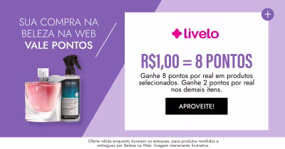 Ganhe 8 pontos por real gasto em produtos selecionados e 2 pontos por real nos demais itens, válido para vendidos e entregues por Beleza na Web. Campanha válida de 02 a 05/04/2026. Consulte o regulamento.