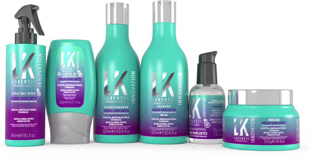 Leave-in em spray para cabelos ondulados. LK Lokenzzi Ondas Marcantes confere definição, maciez e brilho aos fios, mantendo o vigor.