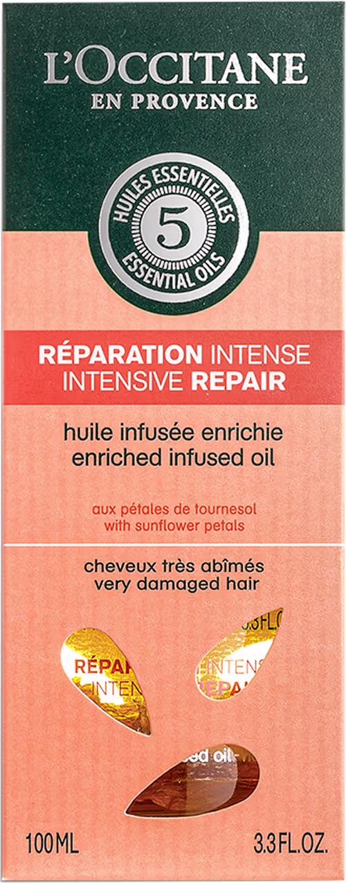Óleo Capilar Reparador L'Occitane en Provence Aromacologia segue os princípios da aromacologia e traz a sinergia de cinco óleos essenciais para reparar e nutrir o cabelo: Angélica, Ylang-ylang, Laranja Doce, Lavanda e Gerânio, além do Óleo de Girassol, fonte de lipídios que formam um filme sobre as cutículas, mantendo-as seladas por mais tempo e preservando a hidratação natural na fibra capilar, para um cabelo com menos volume e fios arrepiados.