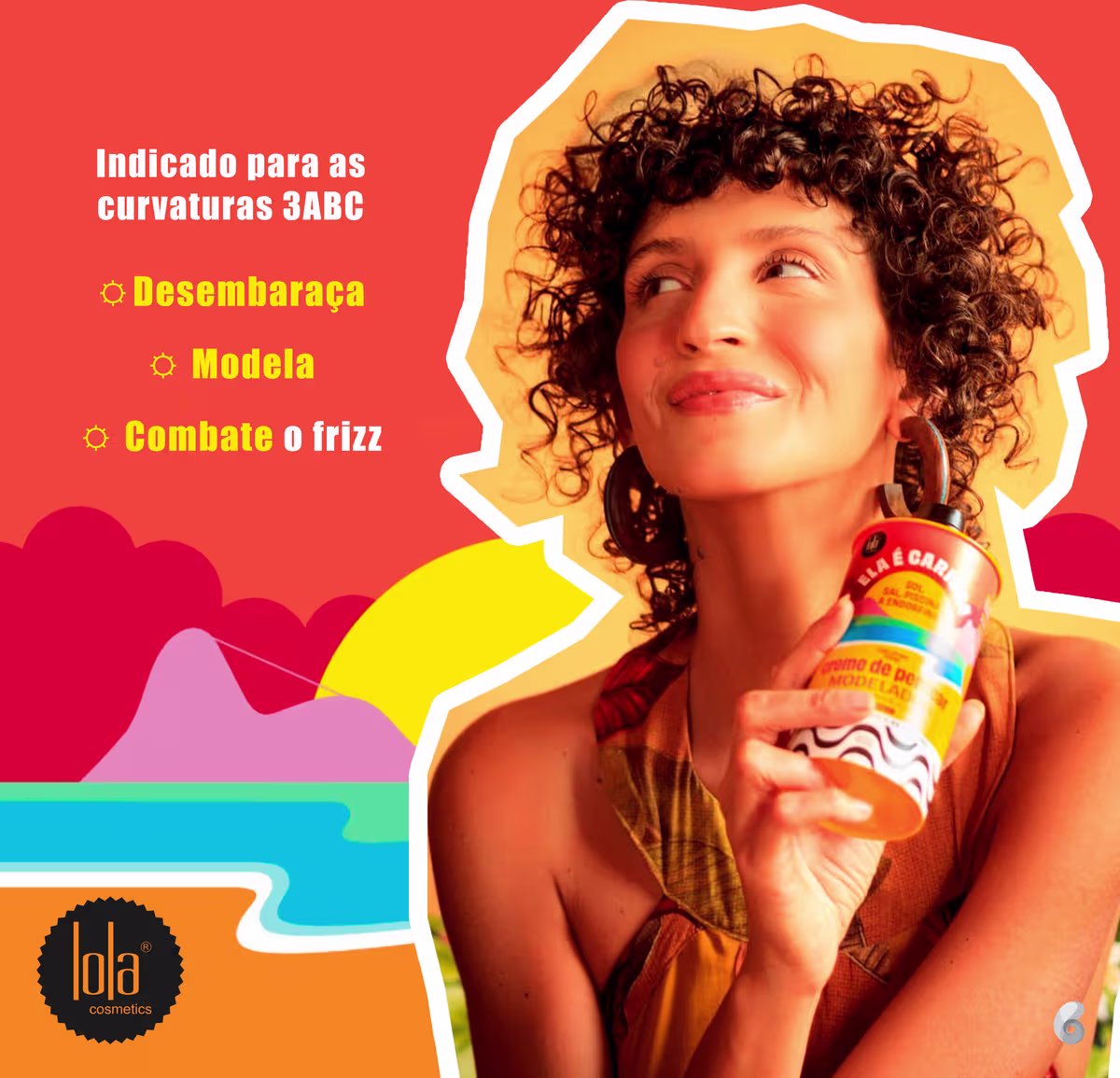 Creme de pentear para cabelos cacheados com curvaturas 3ABC. Creme de Pentear Lola Cosmetics Ela é Carioca Sol, Sal, Piscina & Endorfina desembaraça e modela os fios.