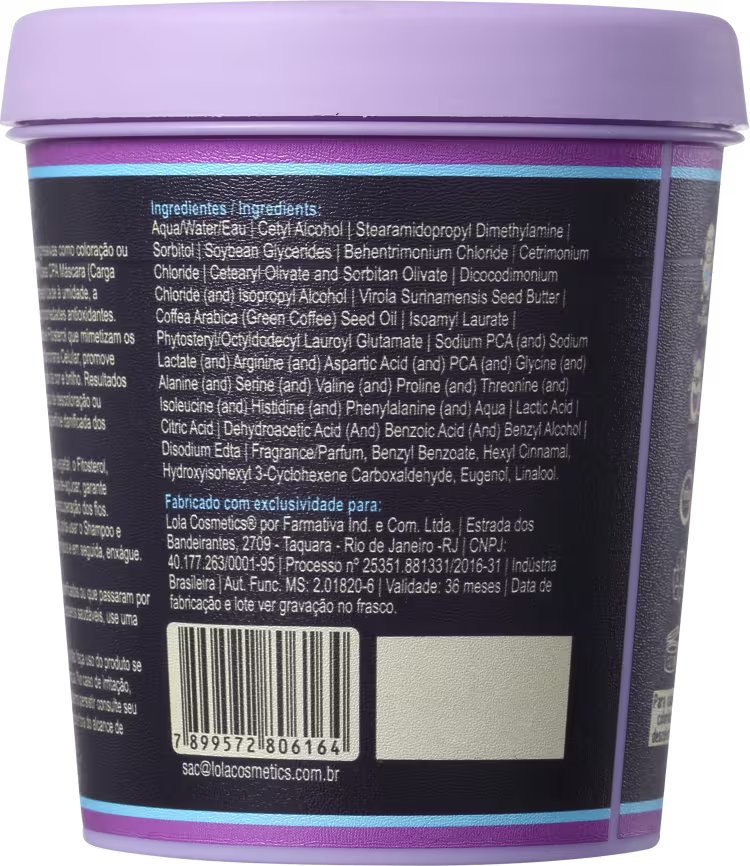 Máscara Lola Cosmetics Eu Sei o Que Você Fez na Química Passada proporciona uma carga proteica de aminoácidos, além uma maior permeabilidade à umidade e capacidade de retenção de água que faz com que o cabelo recupere a hidratação e a força, além de proteger a cor e o brilho.