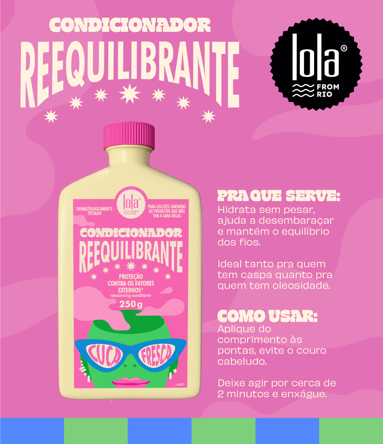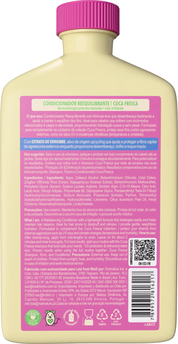 Não sei o CEPCondicionador com ação reequilibrante. Lola from Rio Cuca Fresca promove fios condicionados, fortes e com sensação de refrescância.