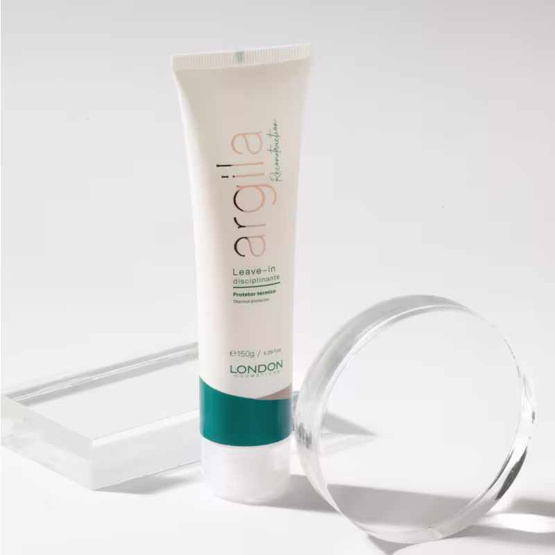 O Leave-in London Cosméticos Argila Reconstruction é um creme condicionador disciplinante sem enxágue, com alta proteção térmica. Ele evita o ressecamento, proporciona ação antifrizz e antiumidade e prolonga a durabilidade da escova progressiva.