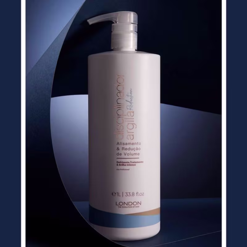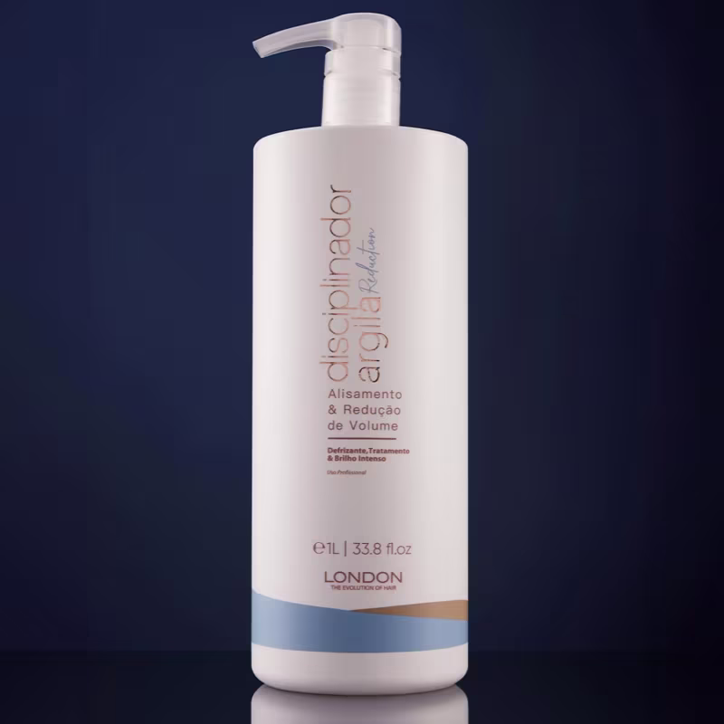 Tratamento disciplinador. London Cosméticos Argila Reconstruction reduz volume, alinha, controla frizz, nutre e dá brilho surpreendente aos cabelo.