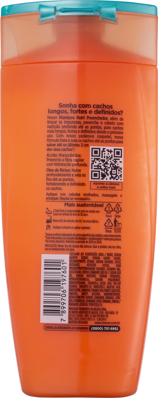 Shampoo preenchedor para cabelos cacheados. Elseve L'Oréal Paris Cachos Longos dos Sonhos limpa os fios, nutre intensamente, deixando os cachos definidos e fortes desde o primeiro uso.