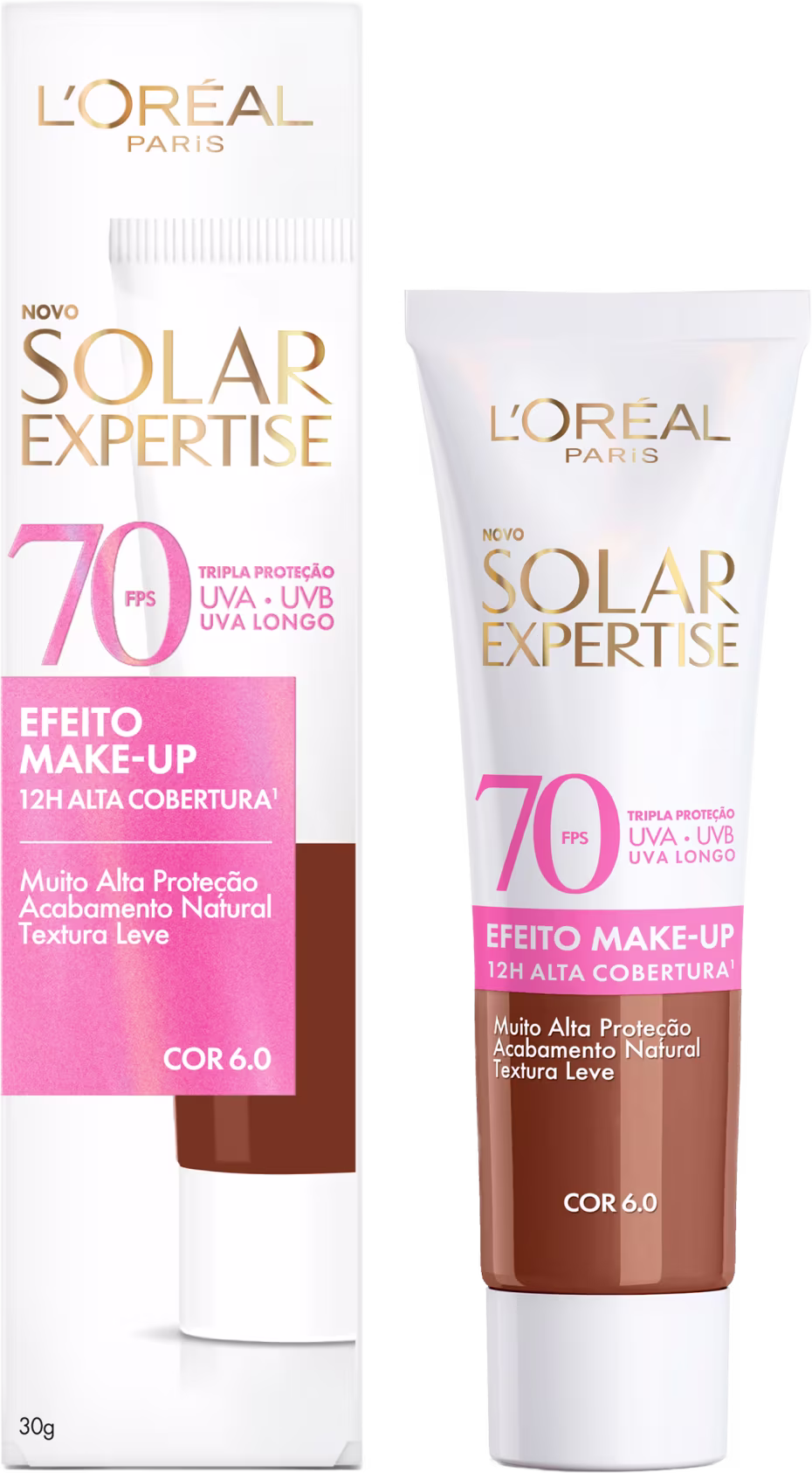 O Protetor Solar com Cor L'Oréal Paris Solar Expertise Efeito Makeup FPS70 combina alta proteção solar com cobertura uniforme, oferecendo um acabamento natural e luminoso ao mesmo tempo em que previne sinais de envelhecimento. Sua fórmula com filtros avançados protege contra UVB, UVA e UVA longo, ajudando a reduzir linhas finas, rugas e manchas causadas pelo sol. Com pigmentos de longa duração que garantem efeito de maquiagem por até 12 horas, o protetor possui textura leve, confortável e ideal para o uso diário.