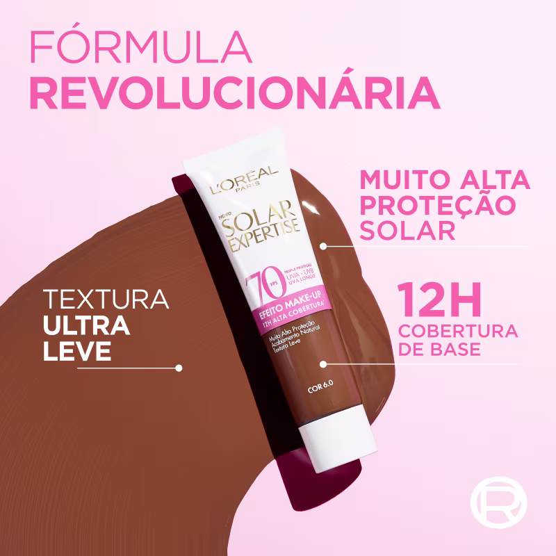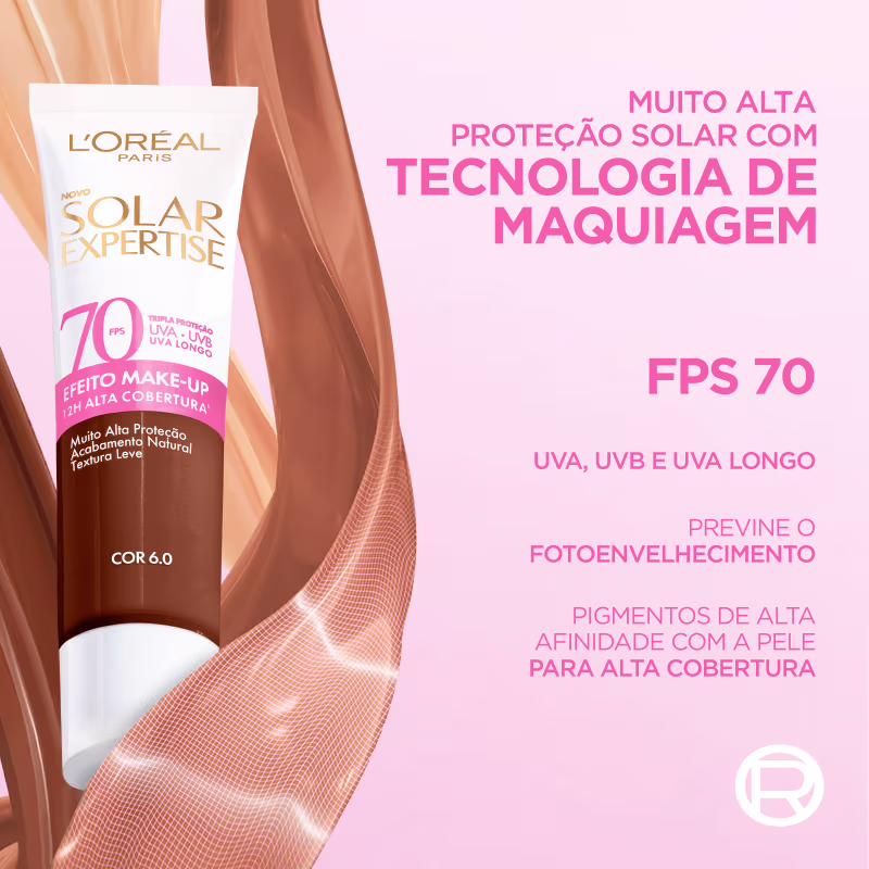 Não sei o CEPProtetor solar com cor e FPS70. L'Oréal Paris Solar Expertise Efeito Makeup FPS70 bloqueia os danos causados pelos raios uvb e uva, enquanto pigmenta a pele.