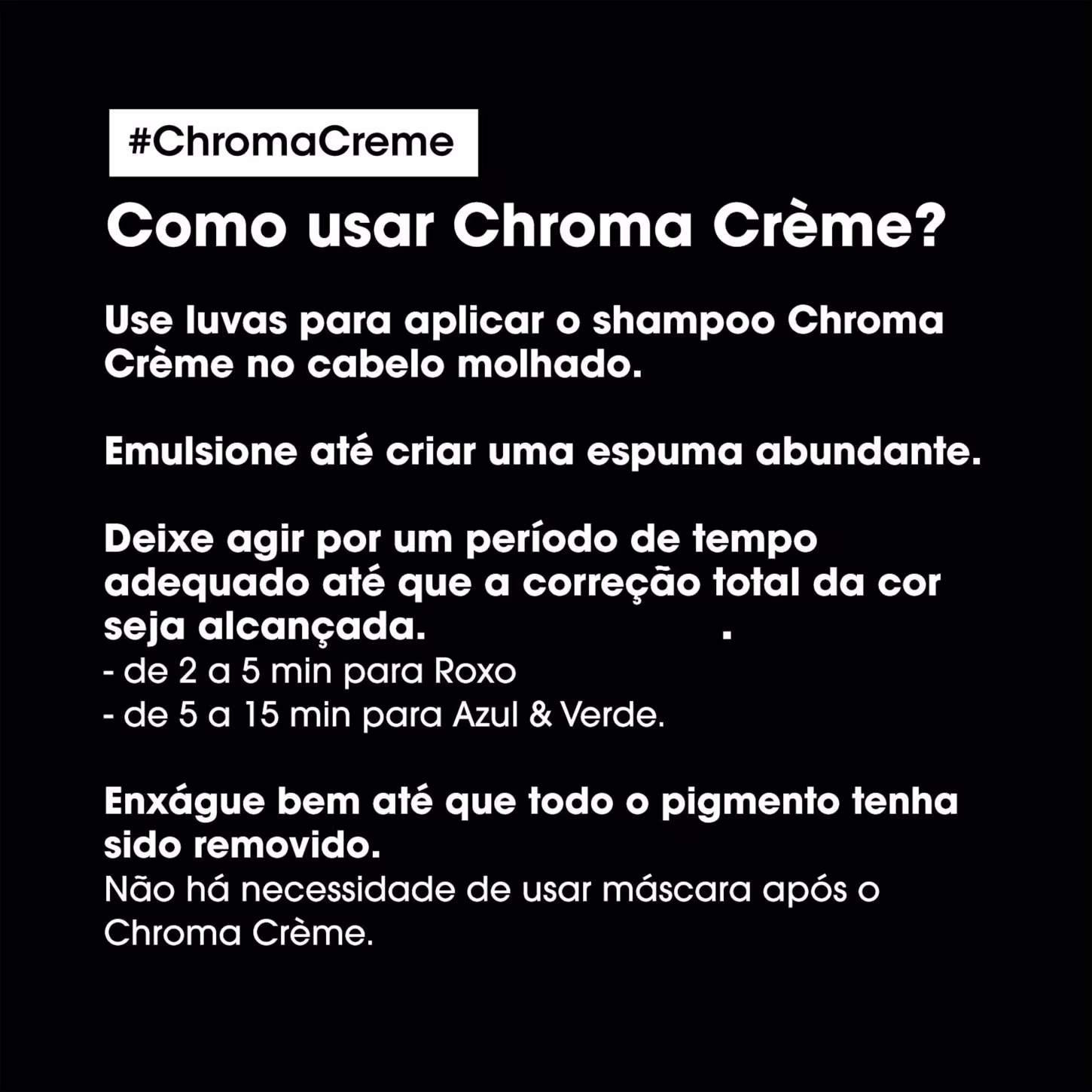 O Shampoo L'Oréal Professionnel Chroma Crème Green Dyes apresenta fórmula com pigmentos profissionais responsáveis por uma neutralização homogênea e co-emulsão de moléculas de tratamento 10x menores que conseguem tratar as áreas mais danificadas e porosas dos cabelos.