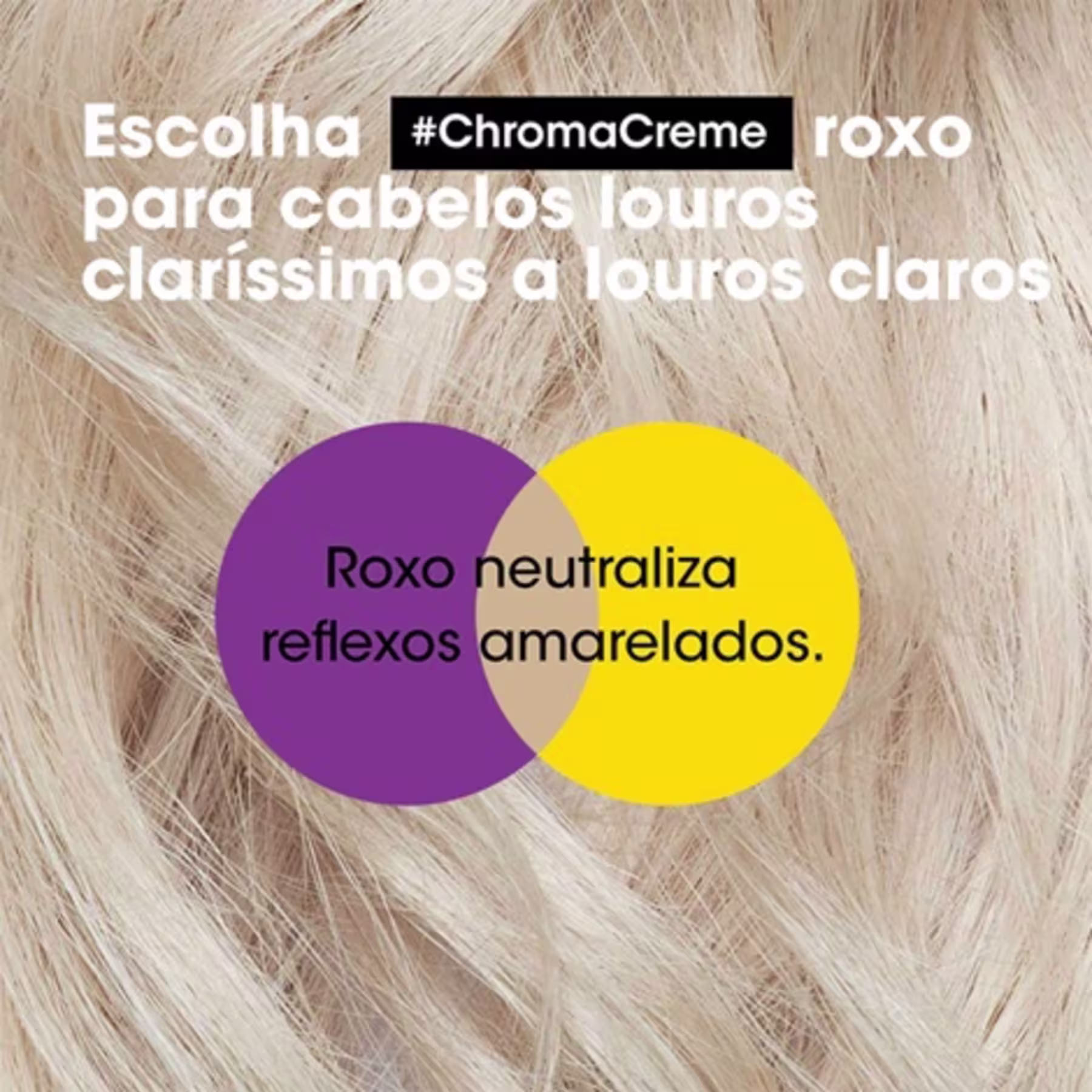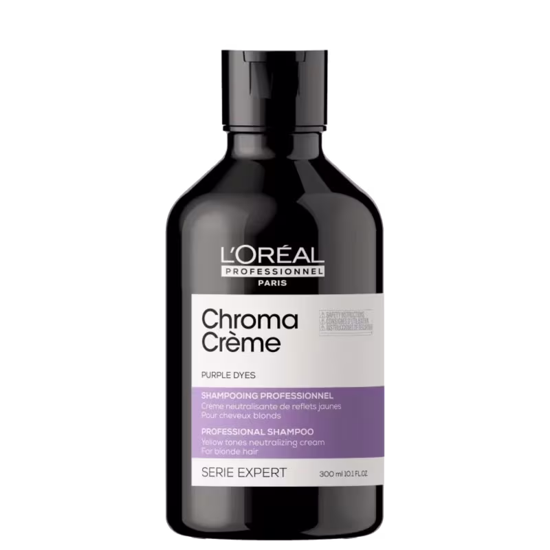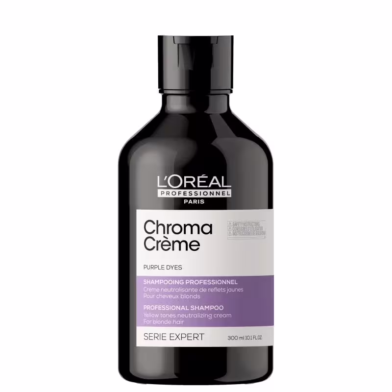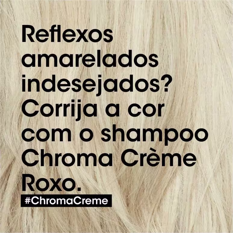 Shampoo desamarelador para cabelos louros claríssimos a louros claros. L'Oréal Professionnel Chroma Crème Roxo neutraliza os tons amarelados.