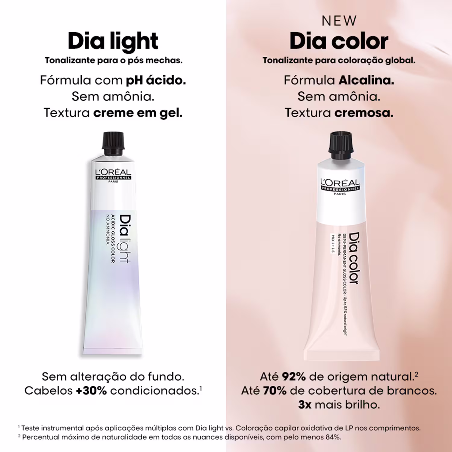 Tonalizante. L'Oréal Professionnel Dia Color nutre os fios, potencializando até 6 semanas de cor intensa e 3x mais brilho aos fios.