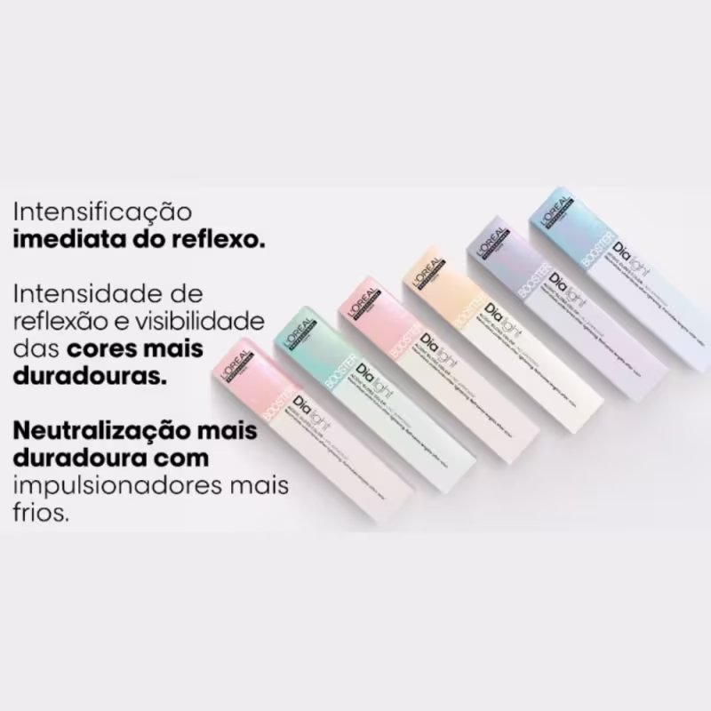 Tonalizante para todos os tipos de cabelos. L'Oréal Professionnel Dialight Booster realça a cor, proporciona brilho intenso e protege os cabelos.