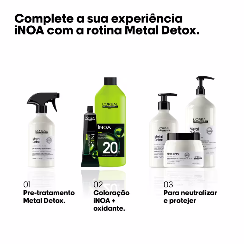 A Coloração Permanente L'Oréal Professionnel iNOA proporciona uma experiência tão confortável quanto um tratamento. Através da tecnologia Oil Delivery System, o óleo conduz os pigmentos ao córtex, garantindo cor de alto impacto e preservando a saúde dos fios. Com resultados que aumentam a hidratação do couro cabeludo em 20% e reduzem a porosidade em 43%, é a escolha definitiva para cobertura de até 100% dos brancos com brilho e maciez.