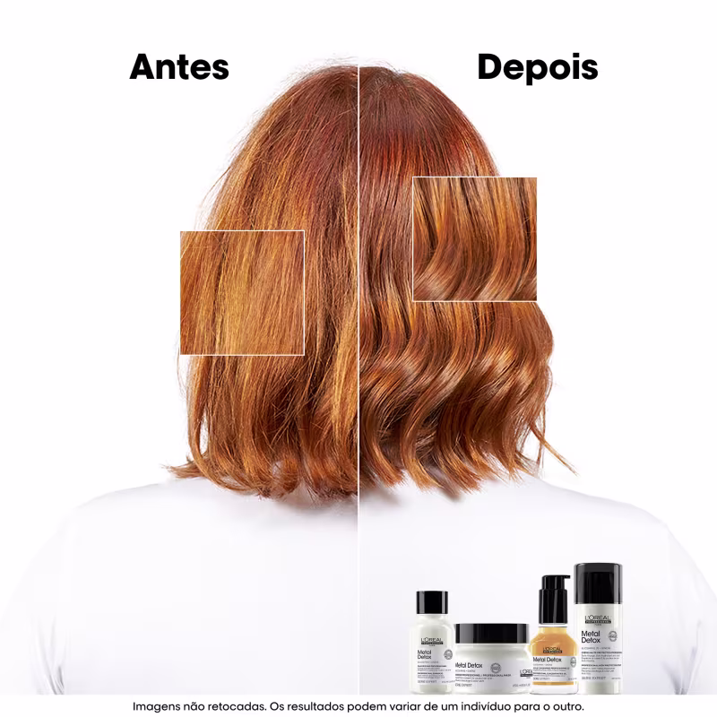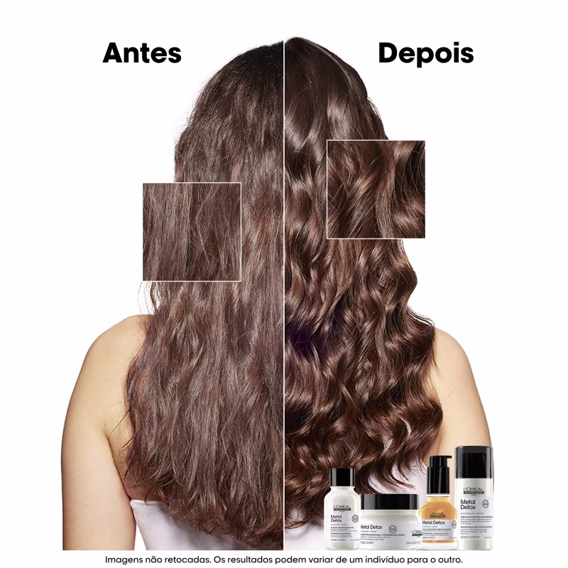 *Lavagem após lavagem, partículas de metal, presentes na água, como o cobre, podem penetrar nas fibras do seu cabelo. Pode atacar a integridade da fibra e promover mudança na cor dos fios. Em alta concentração, pode criar risco de quebra e reflexos indesejados podem aparecer. Para prevenir danos e qualidade da cor, as partículas de metal devem ser neutralizadas. Por isso, é tão importante que você inclua em sua rotina de cuidados com o cabelo o Shampoo Metal Detox L'Oréal.