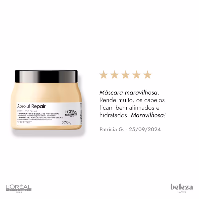 Vale destacar também a textura cremosa de Absolut Repair, que facilita o desembaraço dos fios, evitando a quebra durante o processo. Esse é o produto de tratamento de reconstrução capilar L'Oréal para fazer parte do seu cronograma capilar.