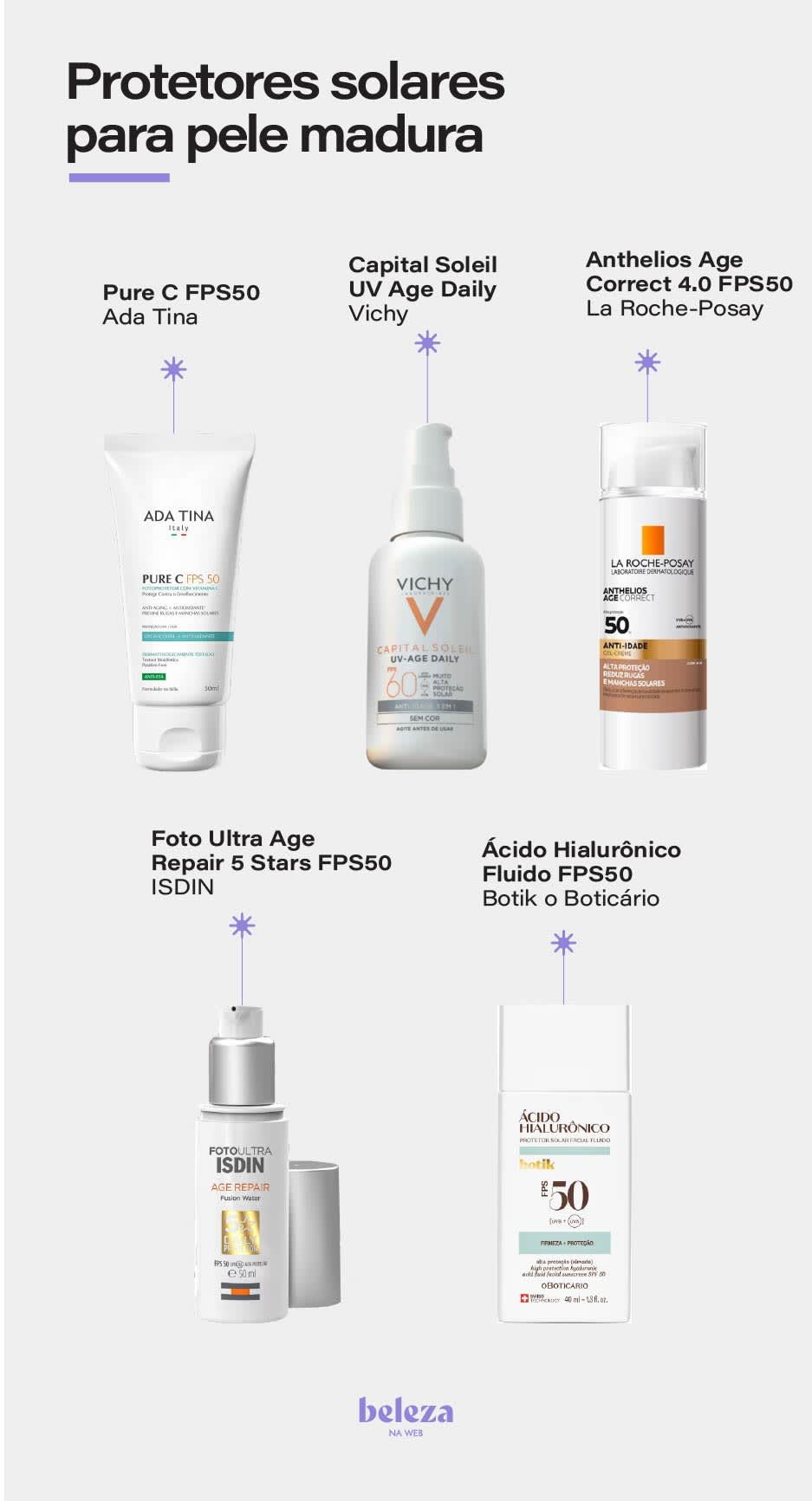 “A pele madura pode buscar filtros solares sempre com FPS maior que UVB 50 e UVA 35”, diz a expert.