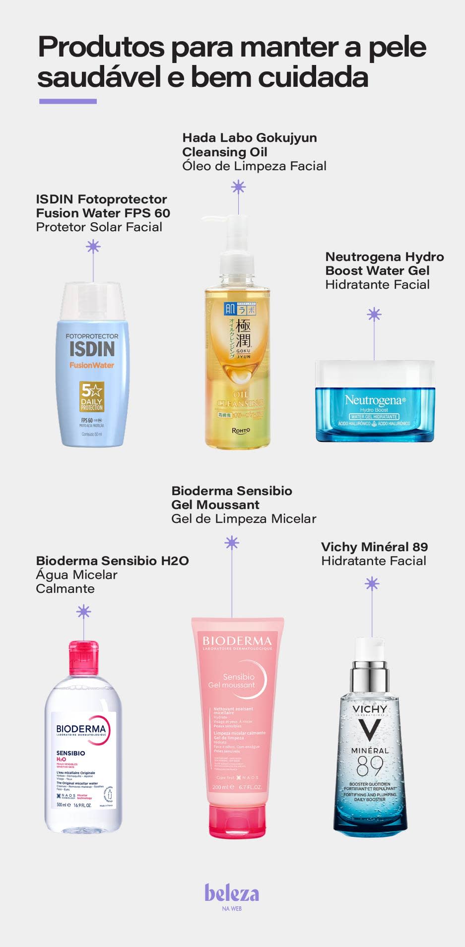 Além disso, uma pele saudável também não acontece sem limpeza adequada e hidratação constante. Esses dois passos ajudam a manter o equilíbrio da pele e a preparar o rosto para receber outros cuidados.