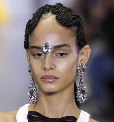 Nas passarelas e nos tapetes vermelhos das últimas temporadas de moda têm mantido os cristais e aplicações sempre próximos, seja essa essa aplicação nos olhos ou nos rostos dos modelos.