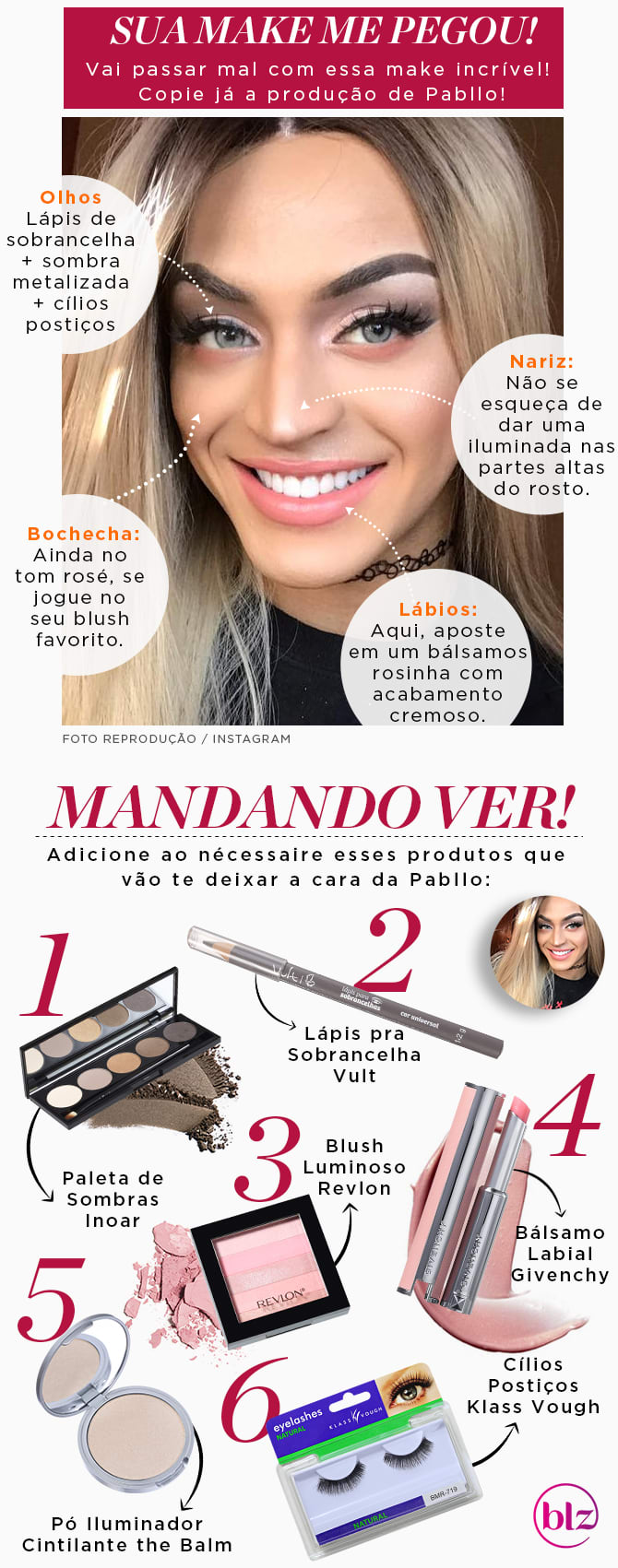 Bora se inspirar em uma make da Pabllo? Agora, a gente te mostra como copiar uma produção monocromática rosé que vai te deixar diva na balada. Anota aí: