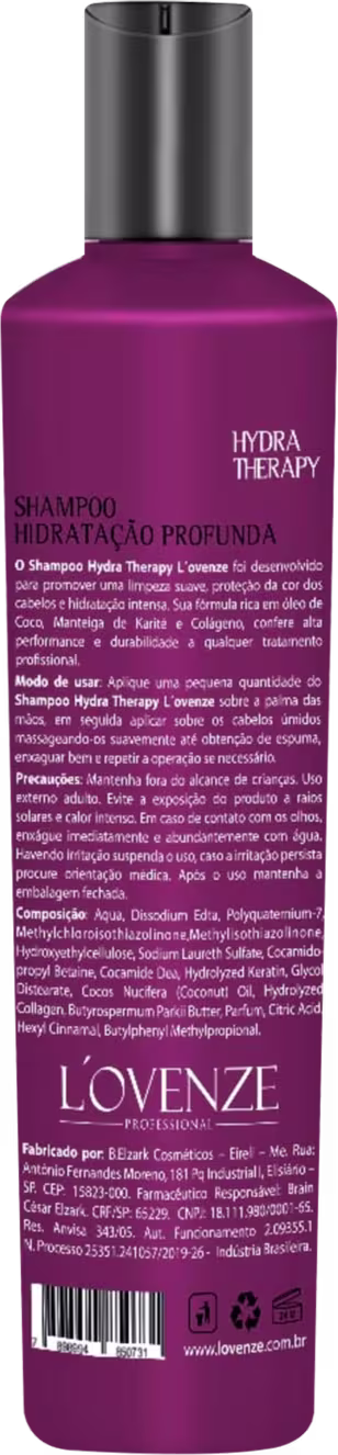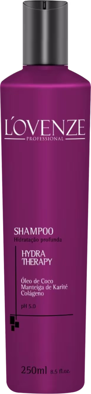 O Shampoo L'ovenze Professional Hydra Therapy conta com uma fórmula enriquecida com Óleo de Coco, Manteiga de Karité e Colágeno. Os ativos permitem que o tratamento dure mais e tenha resultados de alta perfomance.