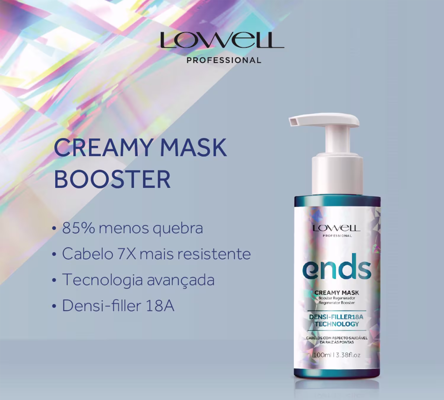 A Máscara Capilar Lowell Ends transforma sua rotina capilar com resultados imediatos de regeneração, brilho e força. Com tecnologia Densi-Filler 18A, proporciona fios mais densos, resistentes e com cutículas regeneradas. Além disso, promove selagem imediata, controle do frizz e um toque acetinado, reduzindo a quebra e deixando os cabelos radiantes e saudáveis.