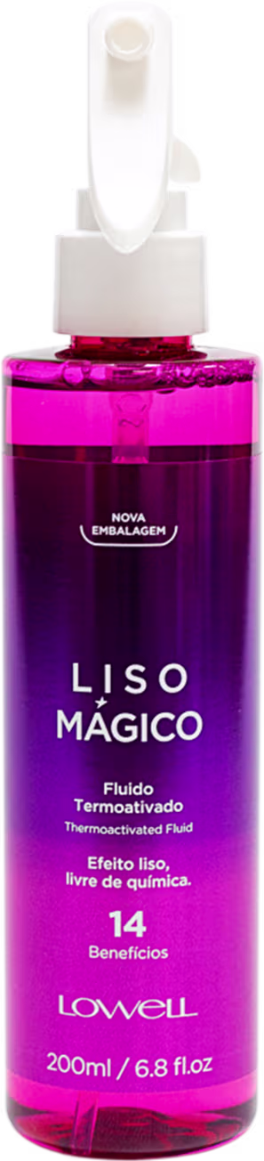Fluido termoativado para todos os tipos de cabelos. Lowell Liso Mágico promove um efeito liso impecável, sem frizz, com brilho e maciez.