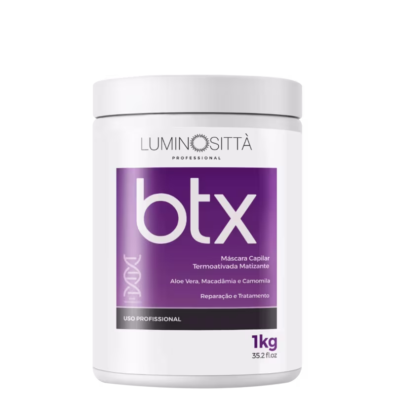 A Máscara Matizadora Termoativada Luminosittà Professional BTX é um produto de alto desempenho tecnológico, indicado para cabelos loiros ou com mechas. Sem formol e rico em proteínas e vitaminas, sua fórmula contém óleo de aloe vera, macadâmia e camomila, que penetram profundamente na fibra capilar, recuperando-a de dentro para fora. Além de promover um selamento perfeito das cutículas, este botox capilar proporciona um lindo tom platinado, sem manchas amareladas indesejáveis. O produto também diminui e controla o frizz, intensifica o brilho e a maciez dos cabelos, deixando-os com um aspecto mais saudável e sem danos.