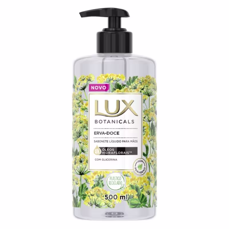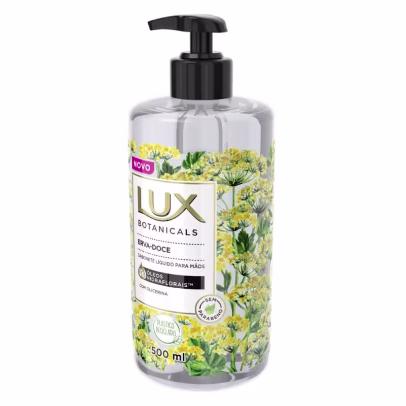Sabonete líquido para mãos e corpo. Lux Botanicals Erva-Doce traz exclusiva combinação de fragrâncias e Óleos Hidraflorais para hidratar e perfumar a pele.