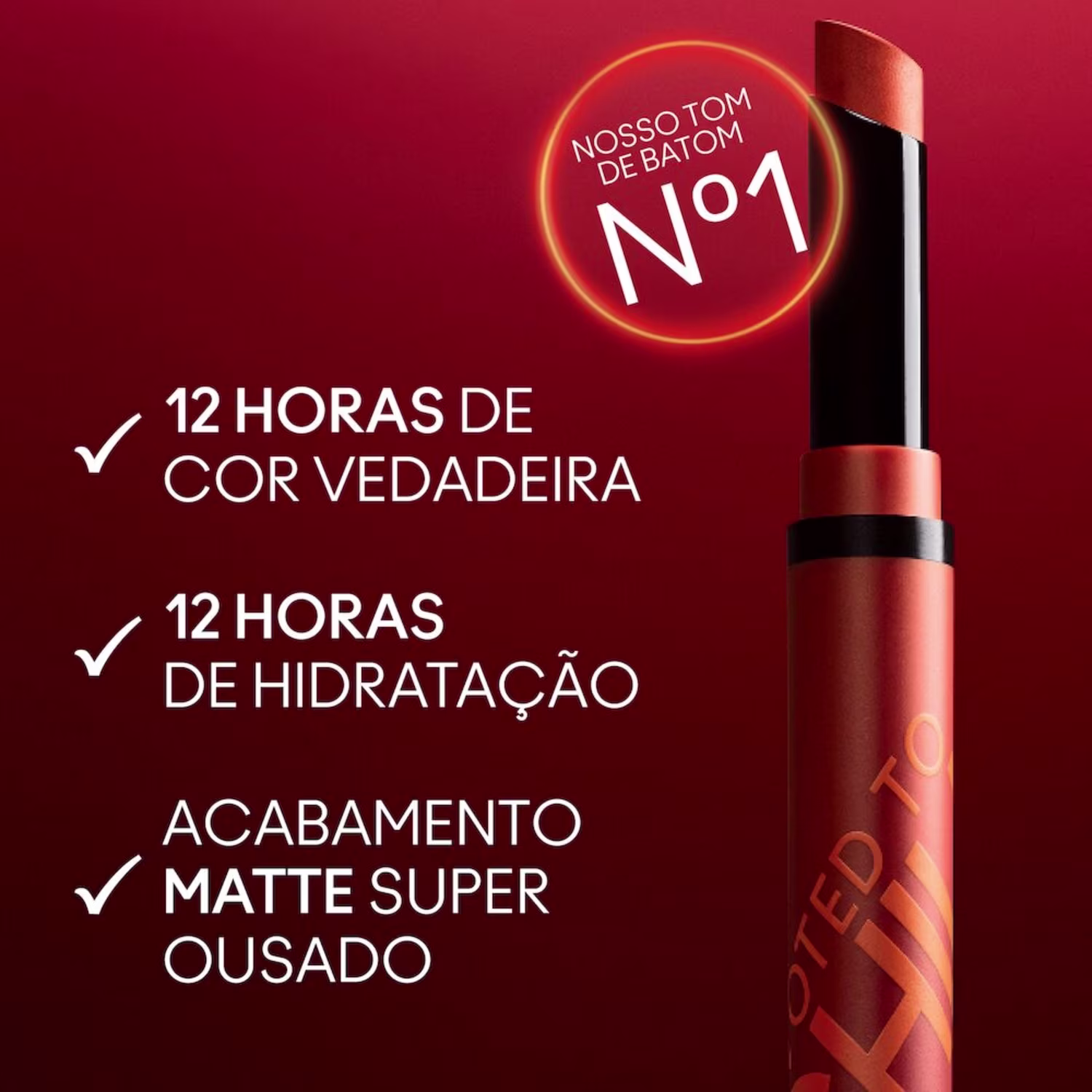 O Batom Matte M·A·C Chili's Crew Powder Kiss Velvet Blur deixa seus lábios mais hidratados, suaves e flexíveis a cada uso! E traz o inesquecível tom vermelho picante com um uso ultraleve que se destaca em um único deslize.
