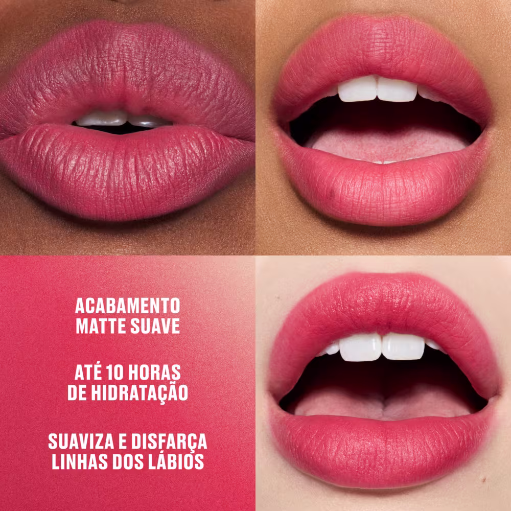 O Batom M·A·C Powder Kiss entrega sofisticação sem abrir mão do bem-estar. Sua fórmula em mousse proporciona aplicação macia e um efeito matte suave, que difunde a cor de forma delicada. O acabamento soft-focus disfarça imperfeições e valoriza o contorno natural dos lábios. Com hidratação imediata, mantém o toque confortável e a sensação de “peso zero” por horas.