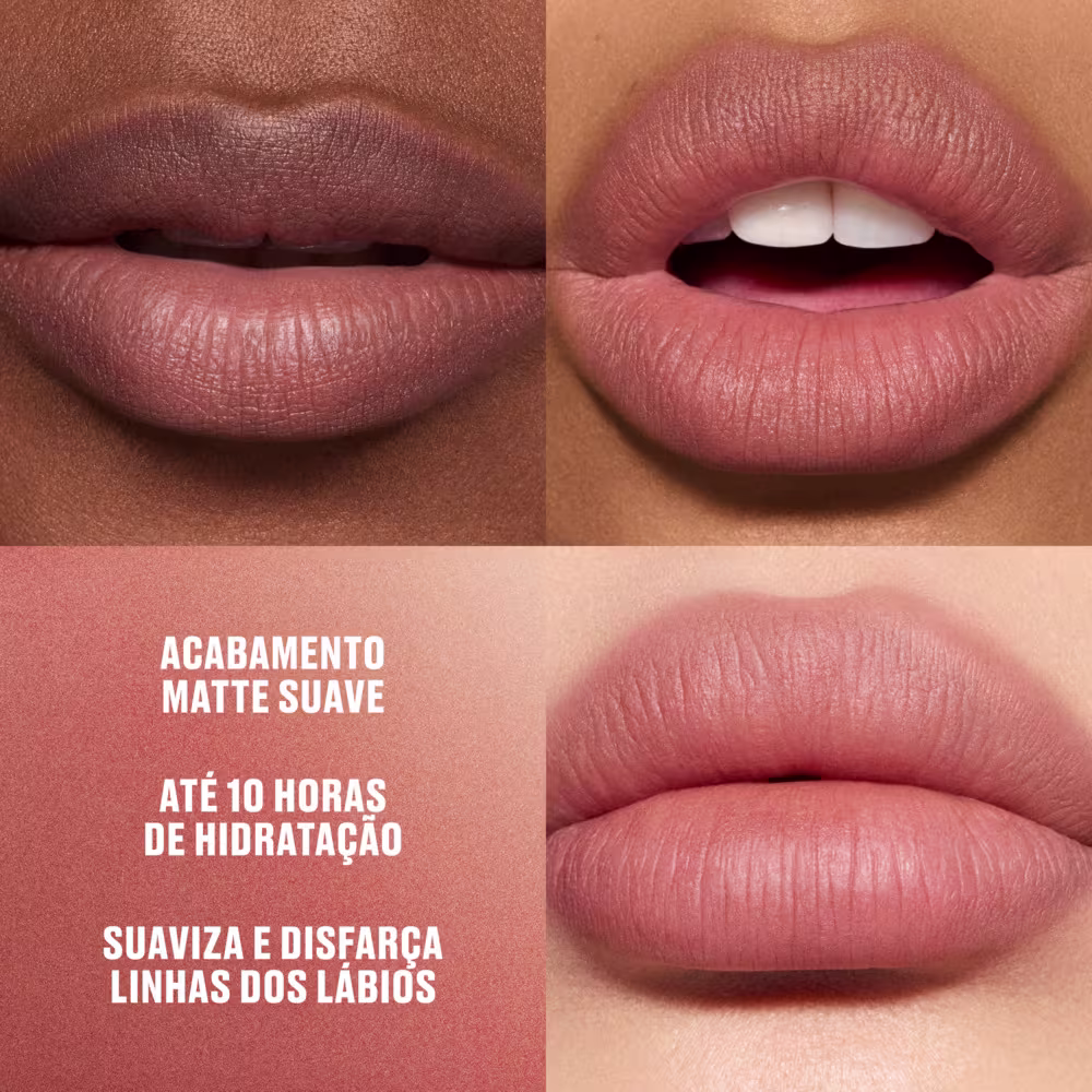 O Batom M·A·C Powder Kiss entrega sofisticação sem abrir mão do bem-estar. Sua fórmula em mousse proporciona aplicação macia e um efeito matte suave, que difunde a cor de forma delicada. O acabamento soft-focus disfarça imperfeições e valoriza o contorno natural dos lábios. Com hidratação imediata, mantém o toque confortável e a sensação de “peso zero” por horas.