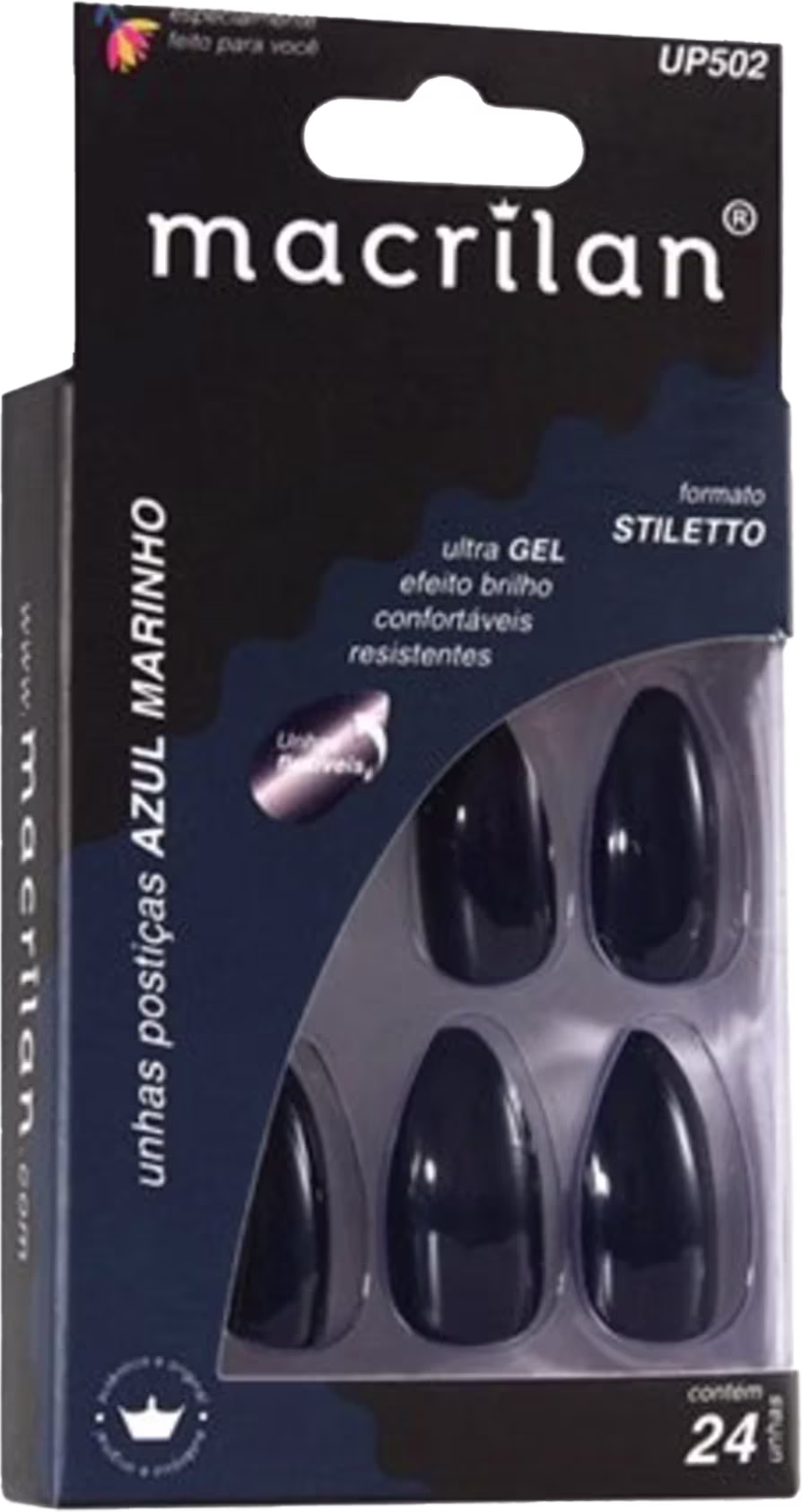 Macrilan Stiletto Azul Marinho UP502 - Unhas Postiças (24 Unidades)
