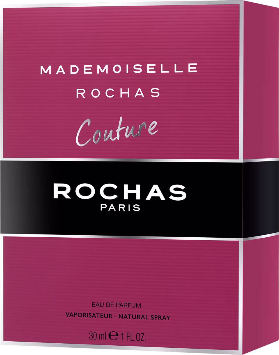 O Perfume Mademoiselle Couture Rochas reinventa sua assinatura original e apresenta um aroma mais refinado e fashion. A versão Couture adiciona sensualidade combinada com sucesso e sofisticação absoluta. O frasco, com a nova cor ameixa e o laço preto, interpreta o design da juventude no perfume.