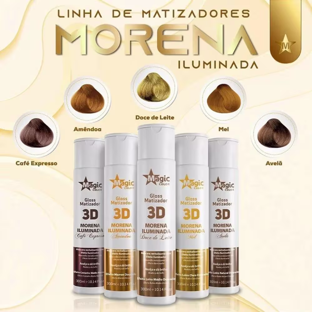 Máscara matizadora. Magic Color 3D Matizador Morena Iluminada possui tripla ação: matiza, restaura e protege os fios. Ideal para manter uma rotina personalizada de cuidados com as madeixas.