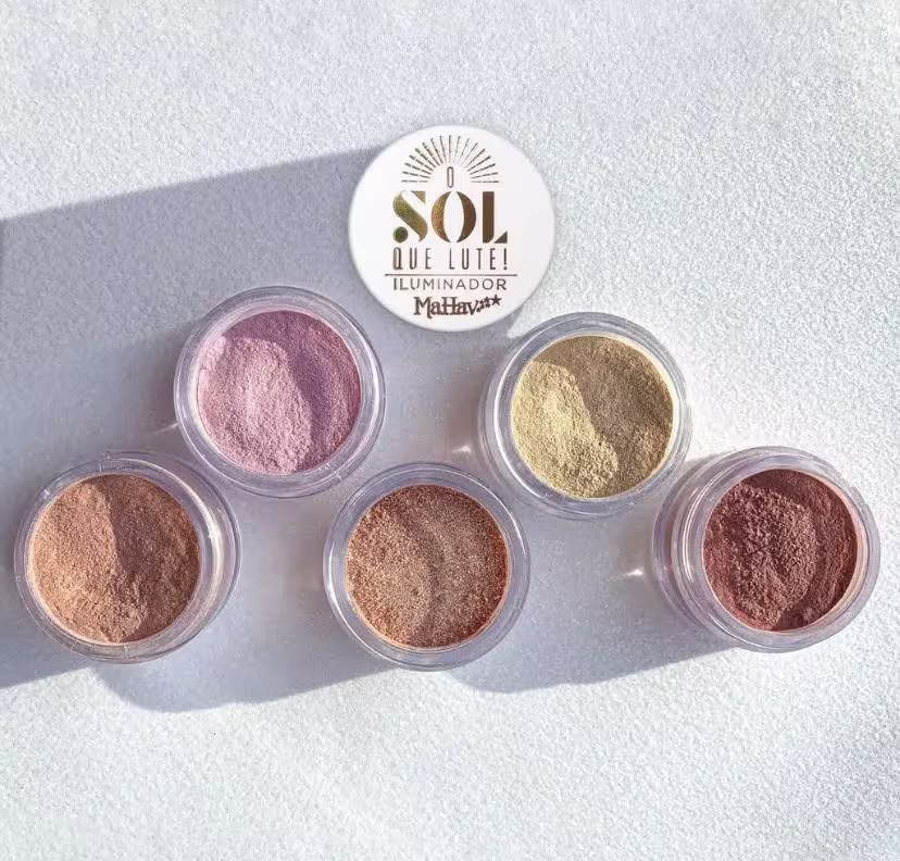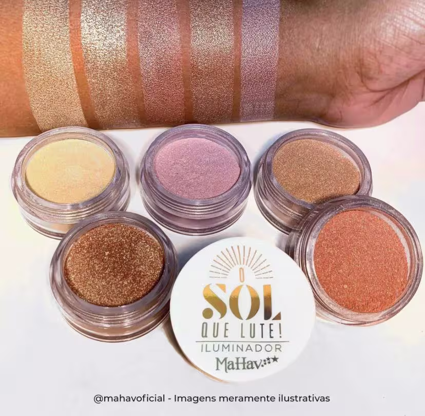 Iluminador Facial Mahav O Sol Que Lute!, brilho radiante, textura fina e toque confortável. Melhores maquiagens Mahav na BLZ. Ver mais ❯