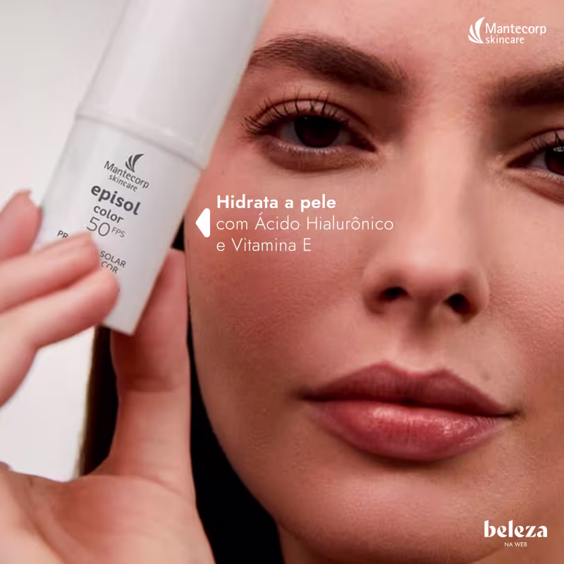 Protetor solar em bastão com cor para todos os tipos de pele. Mantecorp Episol Color Stick FPS50: com ação antioxidante e antipoluição.
