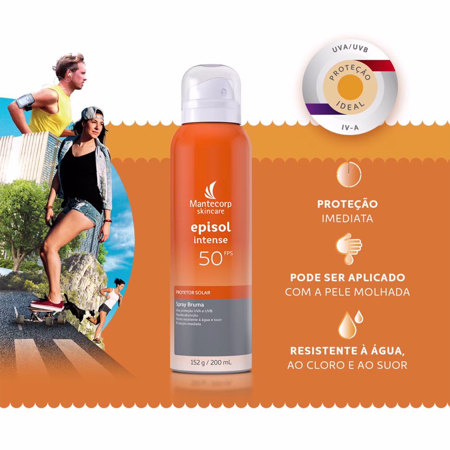 Protetor solar facial em spray. Mantecorp Episol Intense Bruma FPS 50 é fácil de aplicar, tem rápida absorção, ação hidratante e antioxidante.