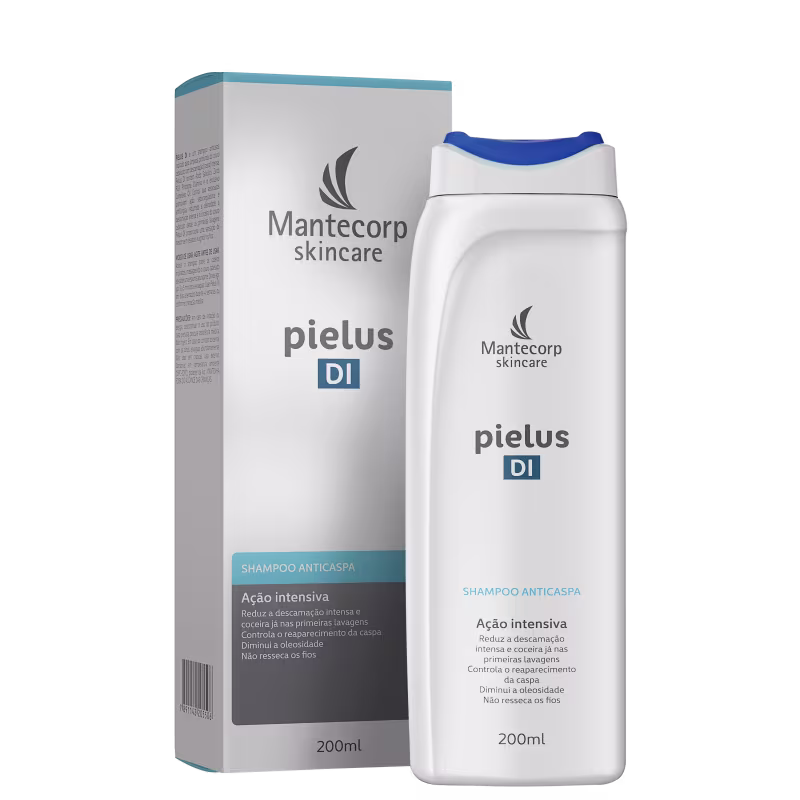 Shampoo Anticaspa Mantecorp Pielus Di contém Ácido Salicílico, Zinco PCA, Piroctona Olamina e o exclusivo Complexo Oil Control que, associados, promovem ação seborreguladora e antifúngica, reduzindo a descamação intensa, coceira e oleosidade a partir das primeiras lavagens. Indicado para limpeza profunda do couro cabeludo com descamação - caspa - intensa, proporciona uma sensação de frescor sem ressecar e agredir os fios.