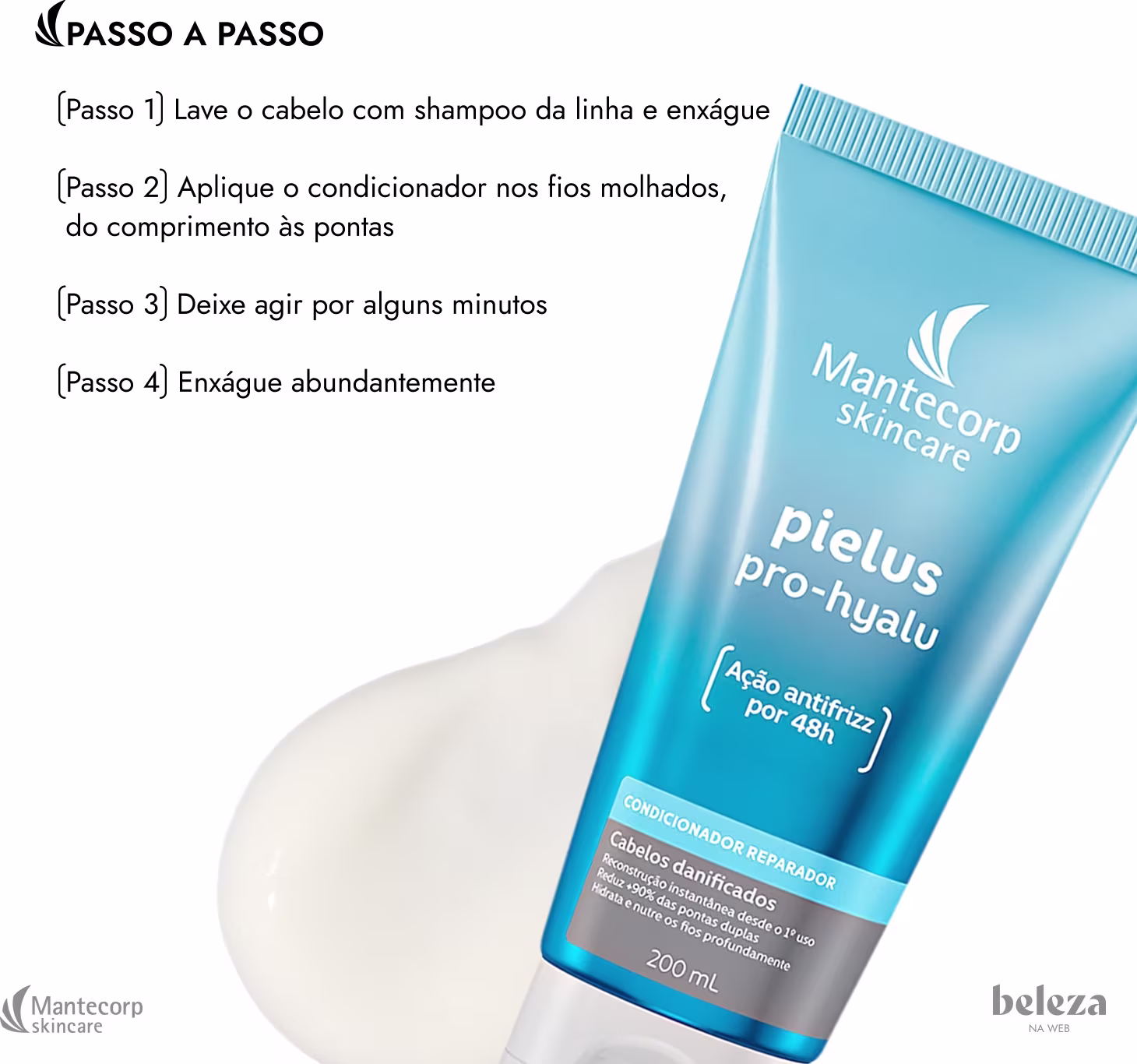 Não sei o CEPCondicionador reparador para cabelos danificados por processos químicos, exposição solar ou uso frequente de ferramentas térmicas. Mantecorp Pielus Pro-Hyalu com ácido hialurônico que nutre, protege e restaura fios danificados, proporcionando maciez e brilho.