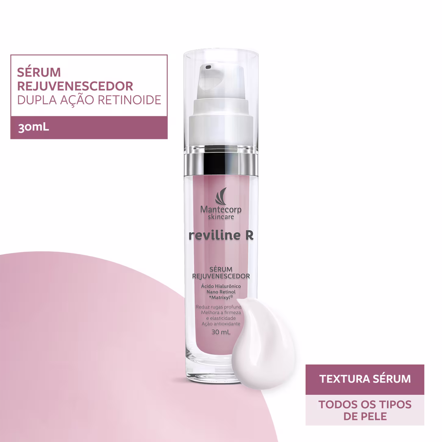 O Sérum Redutor de Linhas Mantecorp Reviline R Rejuvenescedor apresenta fórmula exclusiva e inteligente, com poderosa ação antioxidante. Com ingredientes de alta performance - como Ácido Hialurônico, Nano Retinol e Matrixyl -, embalagem moderna e textura extremamente leve, o produto garante rápida absorção, suaviza os vincos, melhora o toque e promove aparência jovial e radiante.
