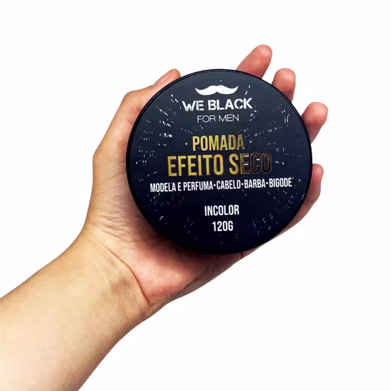 Pomada modeladora para cabelo, barba e bigode. Maquiagem Virtual We Black Efeito Seco perfuma enquanto estiliza os fios com efeito matte.