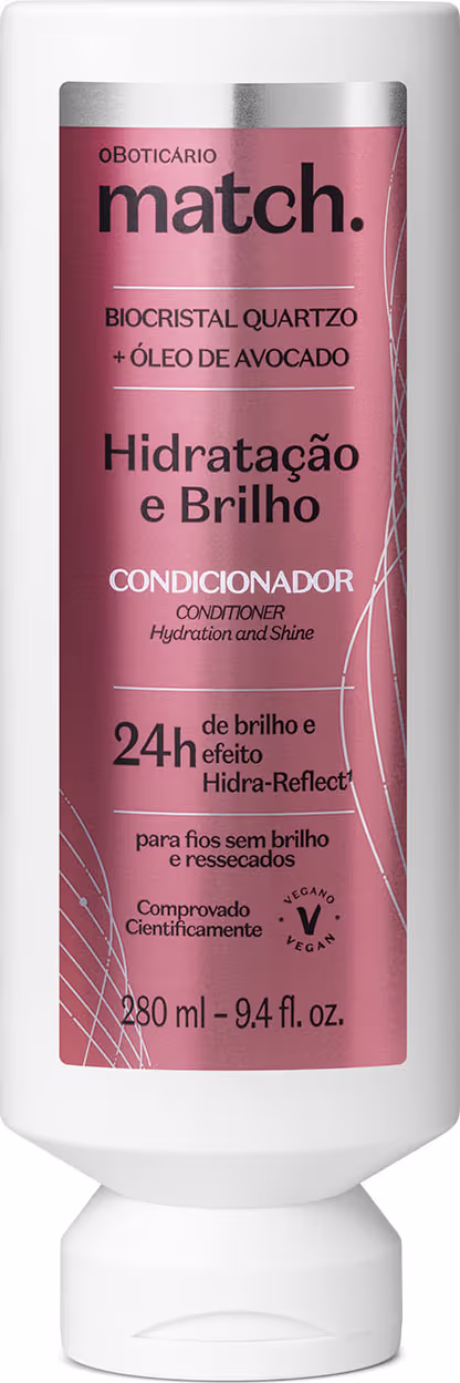 O Condicionador Match o Boticário Hidratação e Brilho desembaraça e sela as cutículas capilares, garantindo fios mais macios e brilhantes. O uso combinado da linha oferece hidratação e brilho para o cabelo, entregando resultados imediatos que recuperam a saúde capilar: