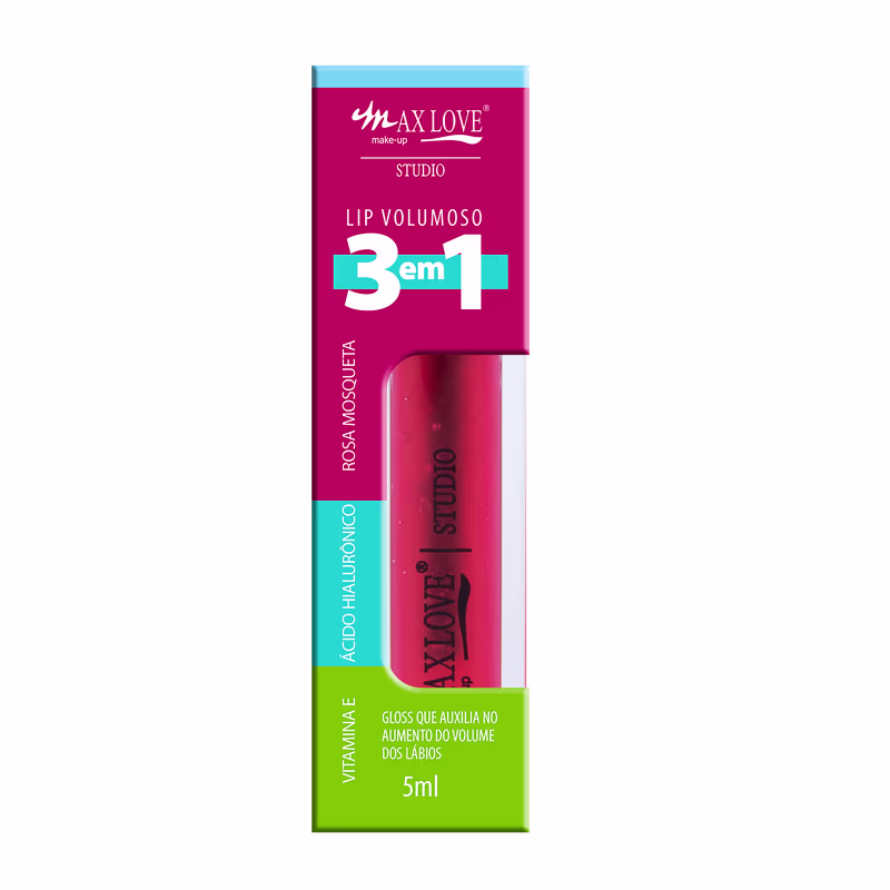 O Gloss Labial Max Love Lip Volumoso 3 em 1 possui fórmula enriquecida com Extrato de Rosa Mosqueta, Ácido Hialurônico e Vitamina E, que hidratam e protegem a pele labial. O uso contínuo auxilia no aumento do volume dos lábios.