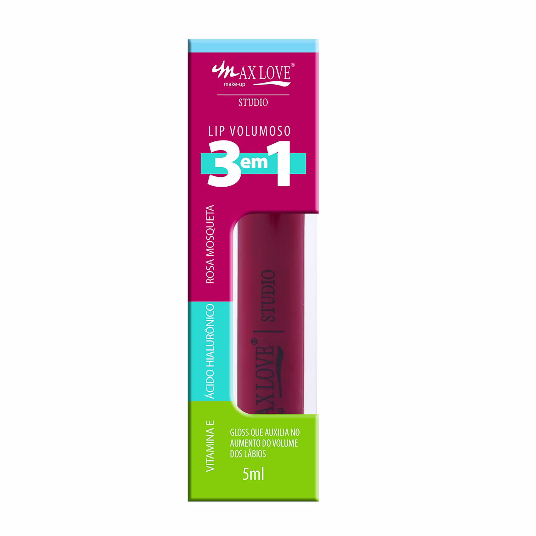 O Gloss Labial Max Love Lip Volumoso 3 em 1 possui fórmula enriquecida com Extrato de Rosa Mosqueta, Ácido Hialurônico e Vitamina E, que hidratam e protegem a pele labial. O uso contínuo auxilia no aumento do volume dos lábios.