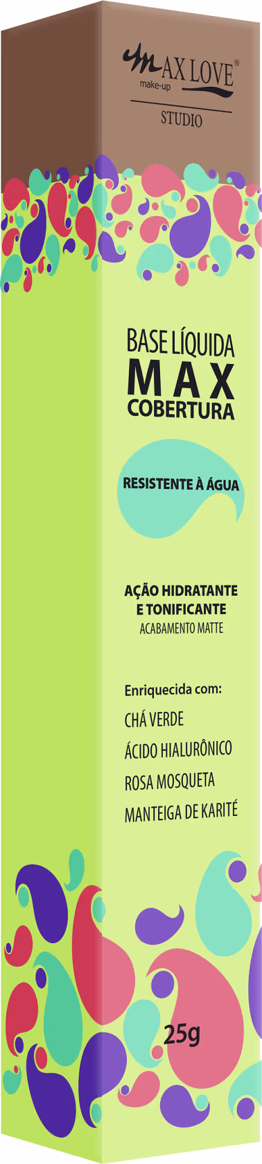 Base com cobertura matte. Max Love MAX Cobertura garante uma pele uniforme, hidratada e tonificada.