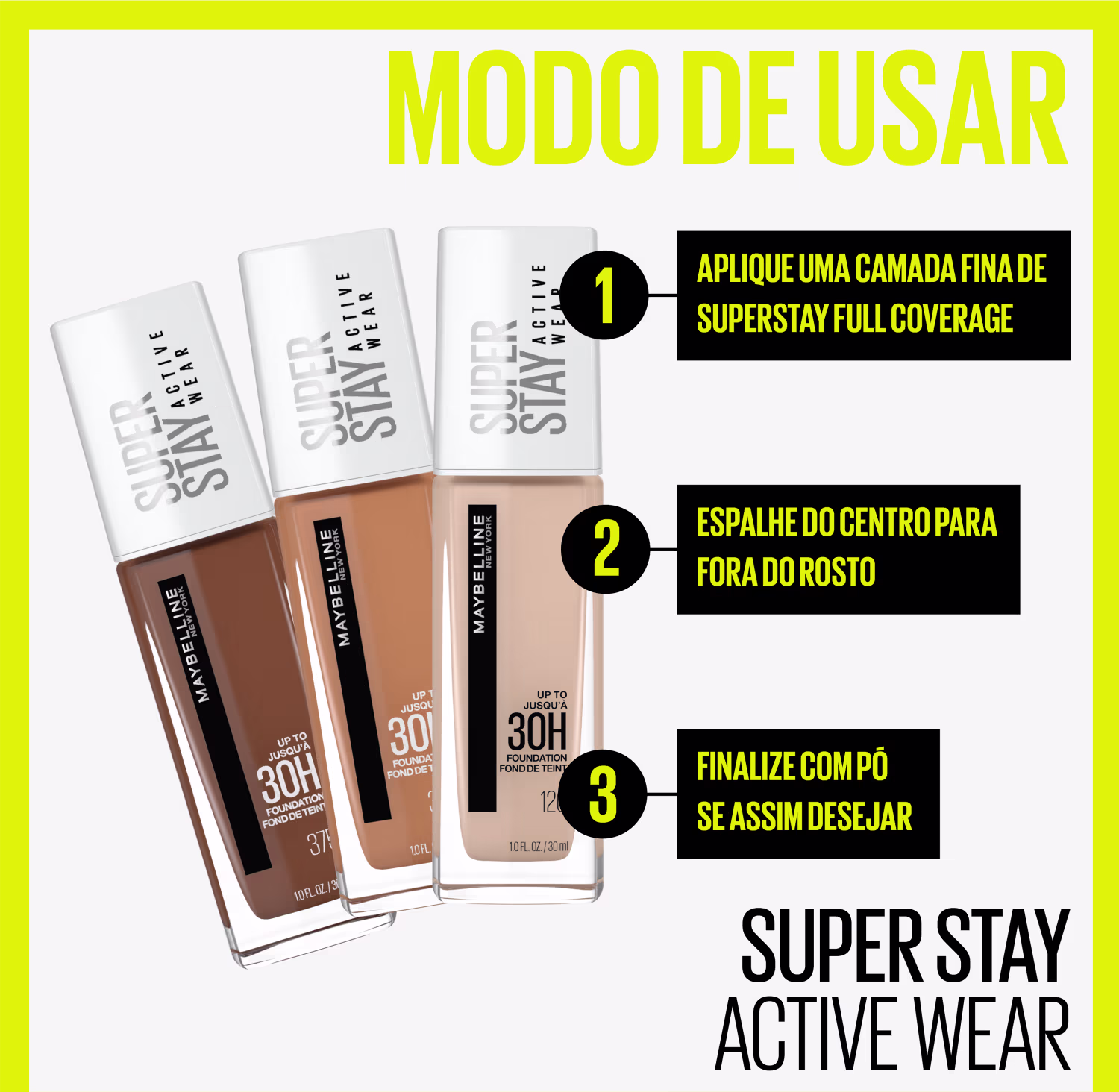 Base líquida. Maybelline SuperStay Active Wear é a solução para quem busca uma pele com acabamento profissional e impecável o dia todo. Desenvolvida para resistir à sua rotina agitada, ela oferece a confiança de uma maquiagem perfeita por até 24 horas.