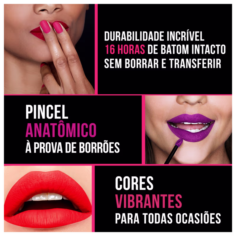 Batom Líquido Longa Duração Maybelline Superstay Matte Ink City Edition, em diversas cores. Melhores Batons Líquido Maybelline na BLZ Ver mais ❯