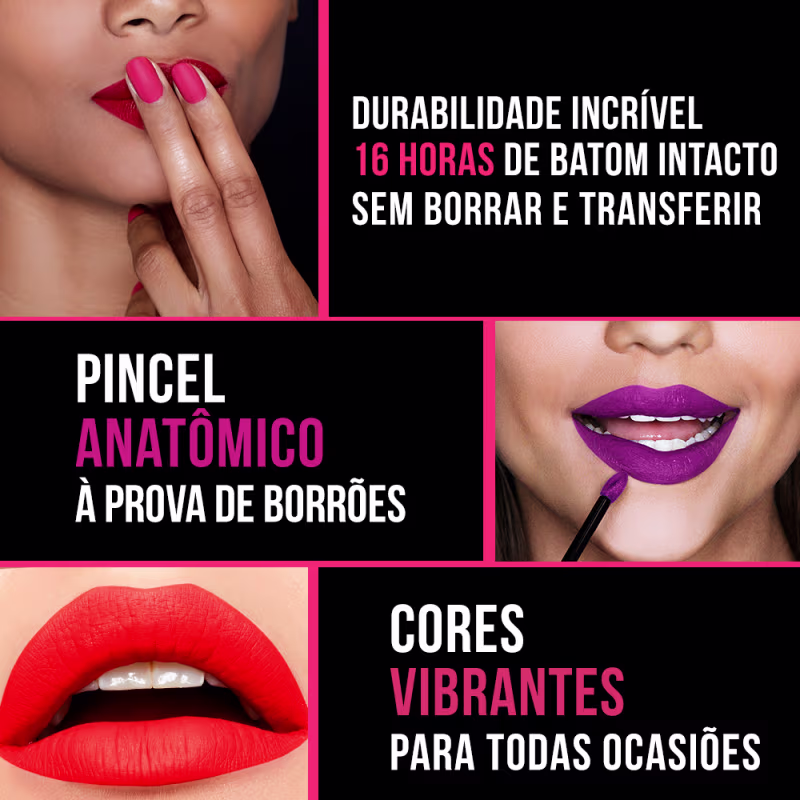 Batom Líquido Longa Duração Maybelline Superstay Matte Ink, cores vibrantes e duradouras. Melhores Batons Líquido Maybelline na BLZ Ver mais ❯