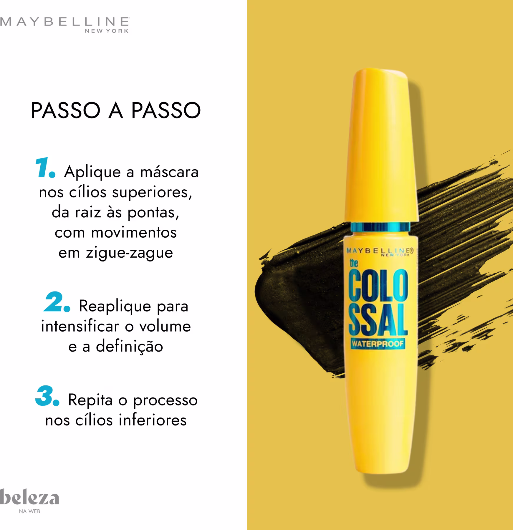 - ▸ Volume colossal e duradouro com fórmula à prova d'água, que resiste ao suor, umidade e lágrimas.