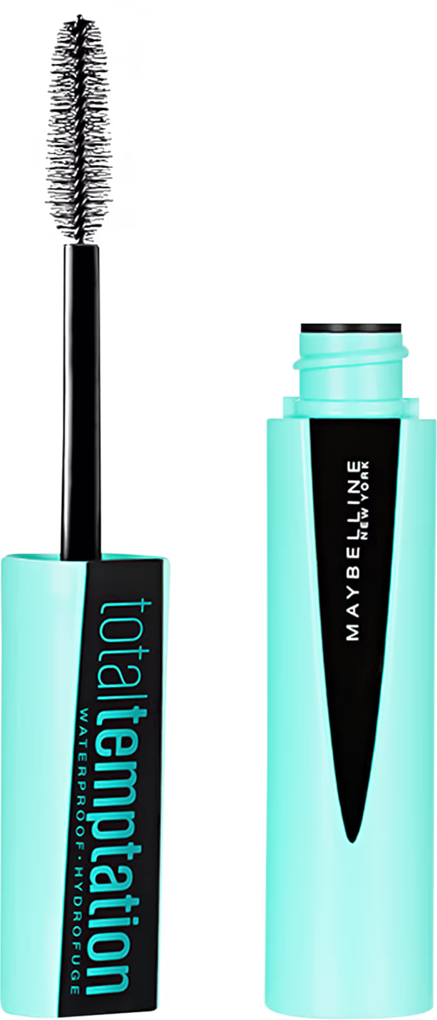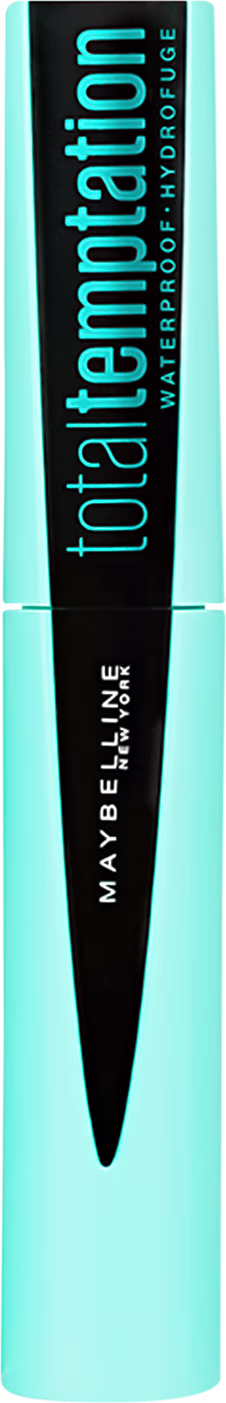Máscara para cílios preta. Maybelline Total Temptation Máscara para Cílios cria volume sem acumular produto enquanto trata os pelos da região. À prova d’água, também oferece cobertura intensa e uniforme.